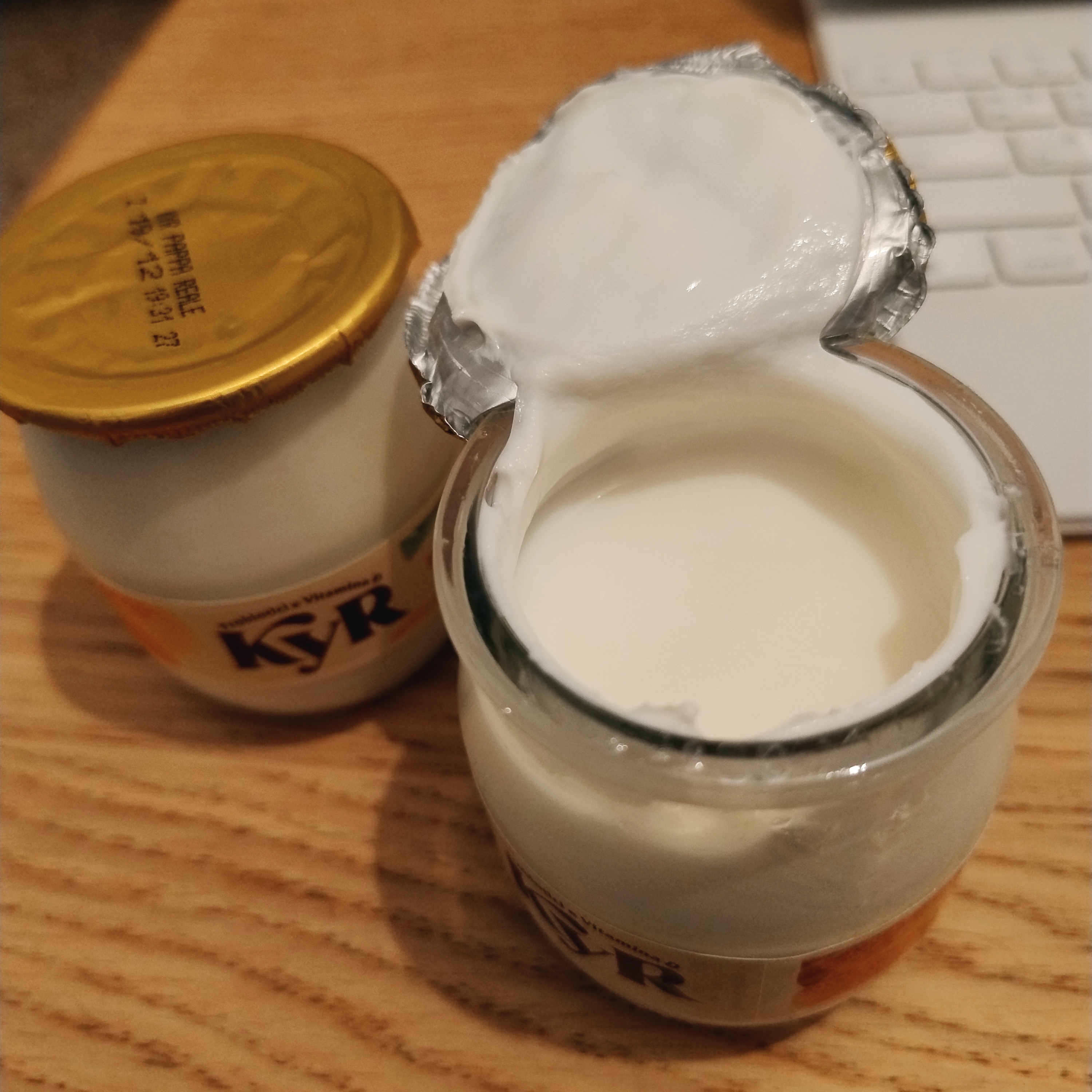 과일맛 요거트와 비교했을 때 kyr은 달지 않은 편이며 맛은 신맛보다는 묵직한 맛(?)이다. 유청을 조금 더 제거하면 그릭요거트 맛이 날 것 같은 맛이랄까?