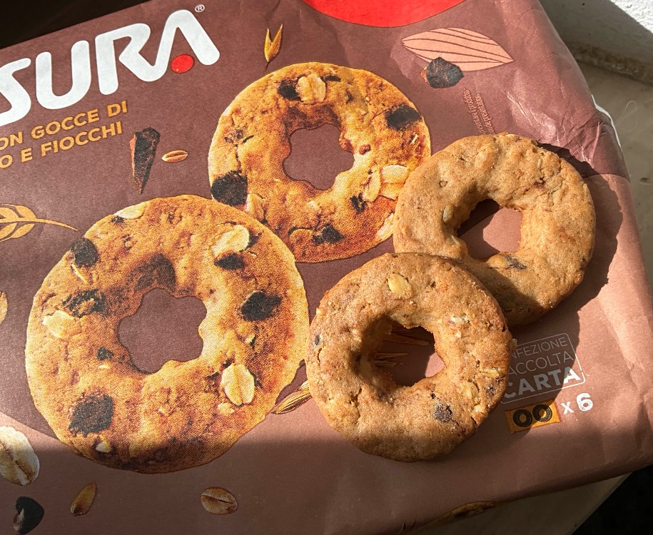 개인적으로 이탈리아 비스킷은 건조한 편이라서 자칫 모래 씹는 느낌이 들곤하는데 이 제품은 그런 느낌이 생각보다 덜했다. 초코칩 덕분에 은은한 단맛이 있으며 너무 많이 달지 않은 덕분에 곡물의 구수함을 느낄 수 있어서 좋았다. 또한 내가 좋아하는 바삭한 알갱이가 씹히는 비스킷이라서 한 번 먹기 시작하면 계속 먹고 싶은 중독성이 있는 제품이었다.