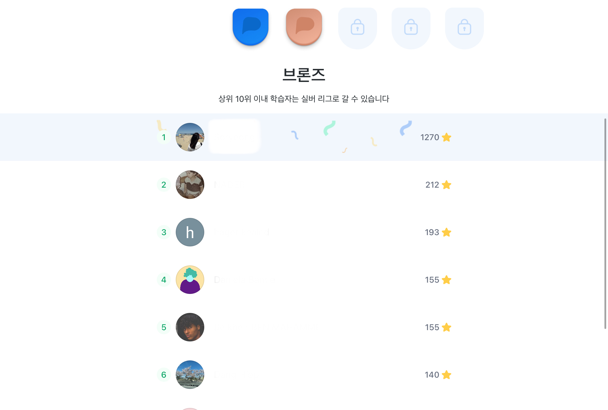 상위 10위 이내에 들면 다음 리그로 진출할 수 있다. 별은 새로운 수업을 듣거나 복습을 해도 쌓이며 배우는 언어별로 쌓이는 것이 아닌 통합되어 쌓인다. 그렇기에 다수의 언어를 한꺼번에 공부 중이라면 손쉽게 상위 10위 이내에 들 수 있을 것이다.