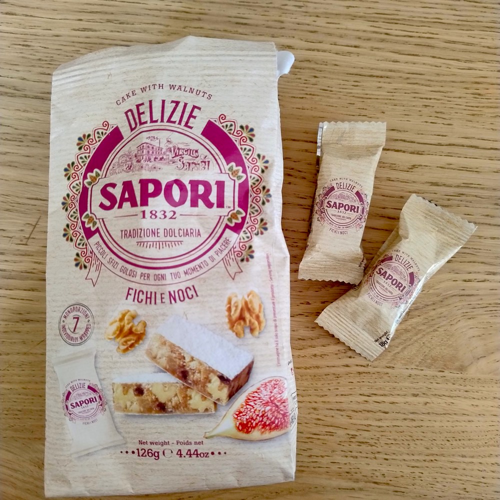panforte fichi e noci는 ’ 무화과와 호두가 들어간 단단한 빵‘이라는 뜻입니다. 제가 구매한 제품은 낱개로 개별 포장된 제품이지만 사실 납작한 원형 모양에 종이 포장으로 된 제품이 일반적입니다. 판포르테는 일종의 과일 케이크입니다. 건조 무화과, 호두, 아몬드, 꿀, 향신료 등이 어우러져 독특한 풍미를 자랑하는 것이 특징입니다. 이탈리아 중부 지방에서 유명한 전통 디저트로 특히 토스카나와 시에나에서 더욱 유명합니다.